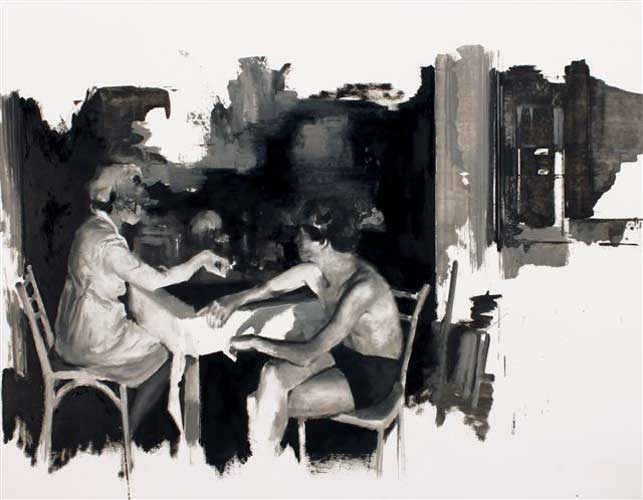 Ю. К.: Один из самых актуальных для меня живописцев — Ансельм Кифер (Anselm Kiefer). Если говорить о живописи как о виде спорта, то, безусловно, этот человек — ученый, который занимается в чистом виде современной живописью. Могу назвать Сая Туомбли (Cy Twombly). Но это не ваше поколение. А ваше — они уже давно смотрят журналы по искусству и чешут в этом направлении. Как весь этот соц-арт. Вот Илья Кабаков работал на чисто совковом материале. А уже Косолапов, Соков — все это какие-то американизмы, выстроенные по принципу западного поп-арта. Здесь нет ничего своеобразного. Вообще многое развивается словно по присказке «Пустите Дуньку в Европу». Рейтинги художников какие-то пишут… Провинциальное желание быть похожими на то, как там.