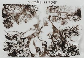 Нечто подобное произошло со спичечными этикетками. В контуре развевающегося над глобусом красного знамени некто усмотрел профиль орла, вцепившегося в земной шар, после чего выпуск этикетки прекратили. Долгое время на продукции фабрики „Маяк" красовалось изображение горящей спички, в зубчатых языках пламени которой однажды обнаружили профиль врага советской власти — Троцкого. Пламя спички тут же „выровнялось". На другой этикетке шрифт букв „СССР" при повороте на 90 градусов оказался похожим на оклады икон, и вместо прежних букв стали печатать стандартные — прямые. Детские перевёртышиПисатель Даниил Иванович Ювачев использовал восемь псевдонимов, самый известный среди них — Даниил Хармс. Есть у него маленький рассказ про картинку-перевёртыш, опубликованный в 1934 году в детском журнале „Чиж". Рассказ написан от лица автора, который делает уборку собственной квартиры и снимает со стены портрет приятеля, Карла Ивановича. Вытерев пыль, вешает портрет обратно, нечаянно перевернув его. Далее герой рассказа сообщает: „Потом я отошёл, чтобы издали взглянуть, не криво ли он висит.
