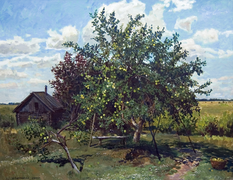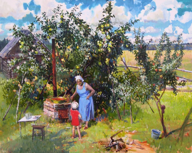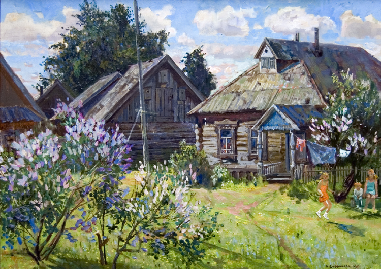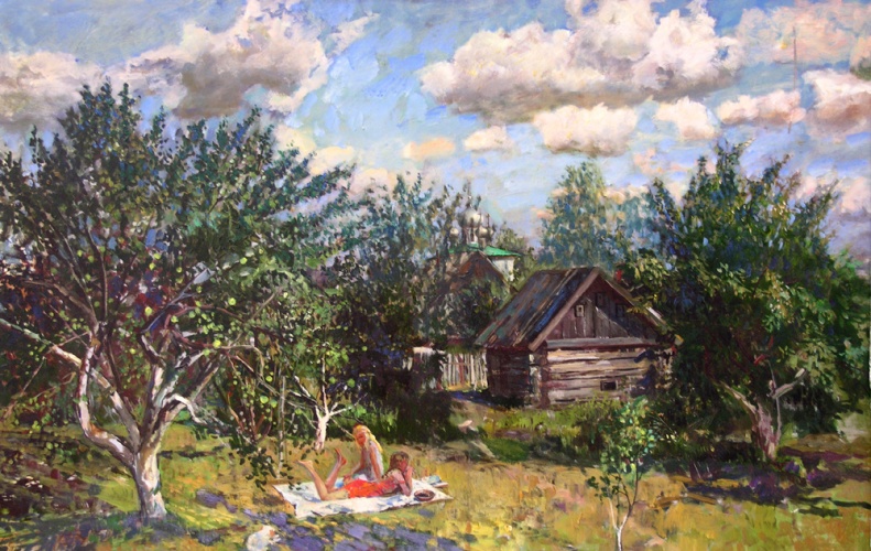 Ряд картин написан по мотивам деревенских каникул. Дачная размеренная жизнь в работах «В саду» (2002 г.), «Бабушкино варенье» (2006 г.) приобретает характер вневременного образа безмятежного безделья, счастье которого понимаешь лишь тогда, когда оно заканчивается.