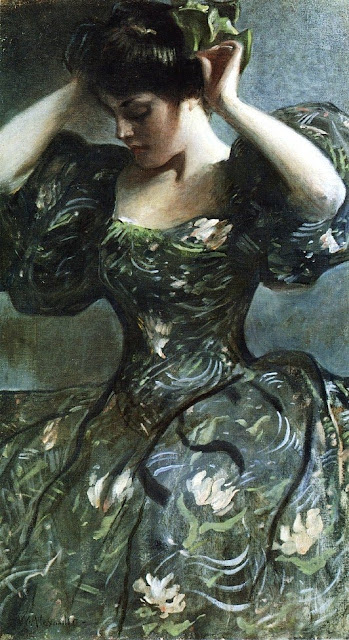 John White Alexander (1856-1915) американский художник-портретист, художник-символист. Родился в городе Аллегейни. В ранние годы он осиротел и воспитывался дедом в Питтсбурге. В 12 лет он уже пошёл работать, но странная тяга к искусству заставляла его снова и снова рисовать. В 1874 году John устраивается в еженедельник Харперс Уикли иллюстратором. После того, как три года он обучался живописи в Нью-Йорке, John White Alexander решает путешествовать по миру, с целью изучать изобразительное искусство и набираться опыта. Мюнхен, Венеция, Флоренция, Нидерланды, Париж. В этих городах он заводит полезные знакомства среди художников, которые оказывают на него большое влияние.